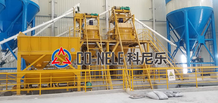 Fertigbeton-Ansatzanlage für die Pflasterblock-Produktion nimmt Planetenmischer für die Mischung von Grund- und Flächenmaterial an. Perfekt passend zu verschiedenen automatischen Bockmaschinen.